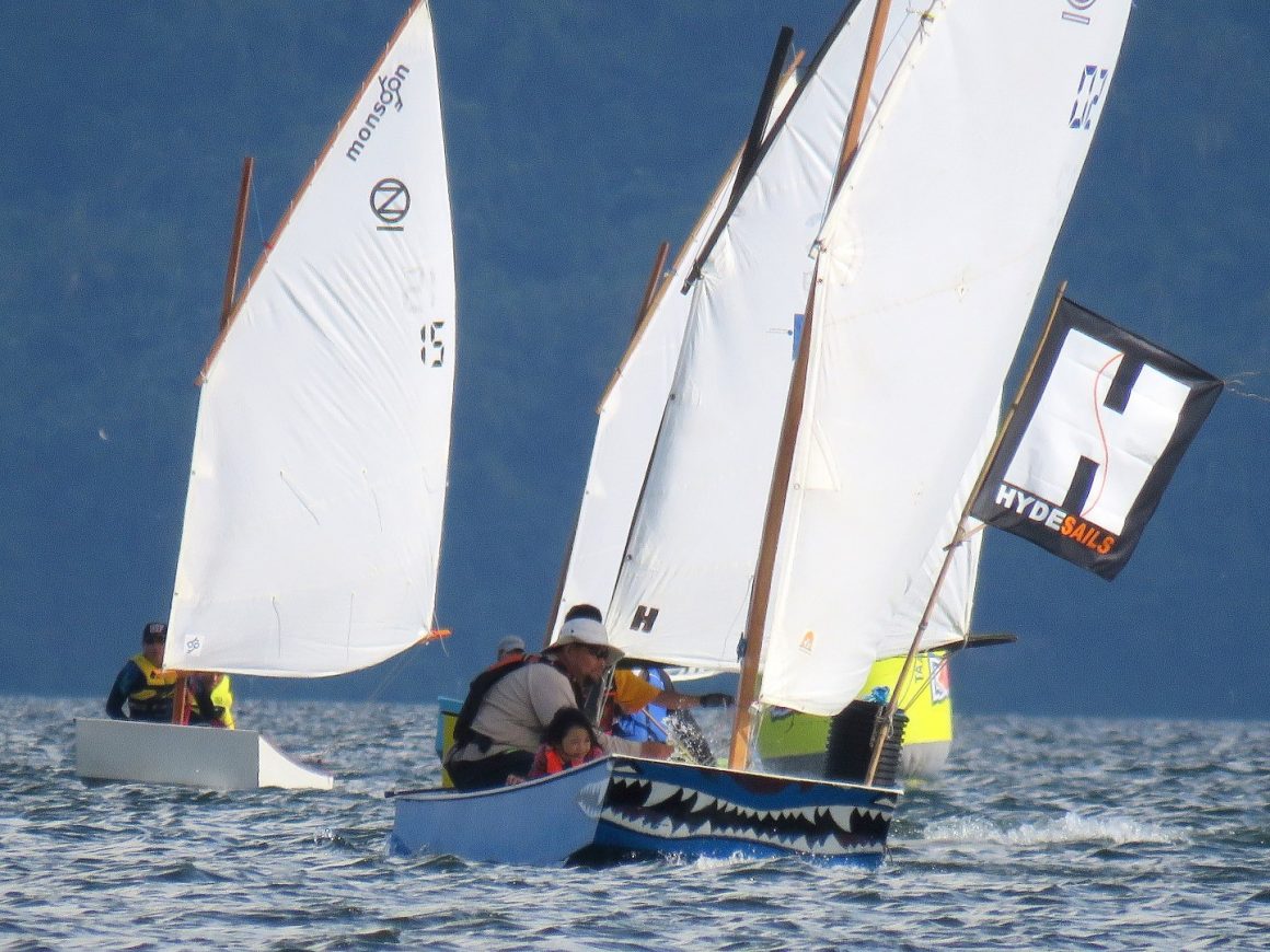 For those still wondering if a rectangular boat can sail – click on the Oz Goose nationals video at top of left column. Performance is of the same rank as most light sailing dinghies with nice long planing runs at 12+ knots when solo in stronger winds.